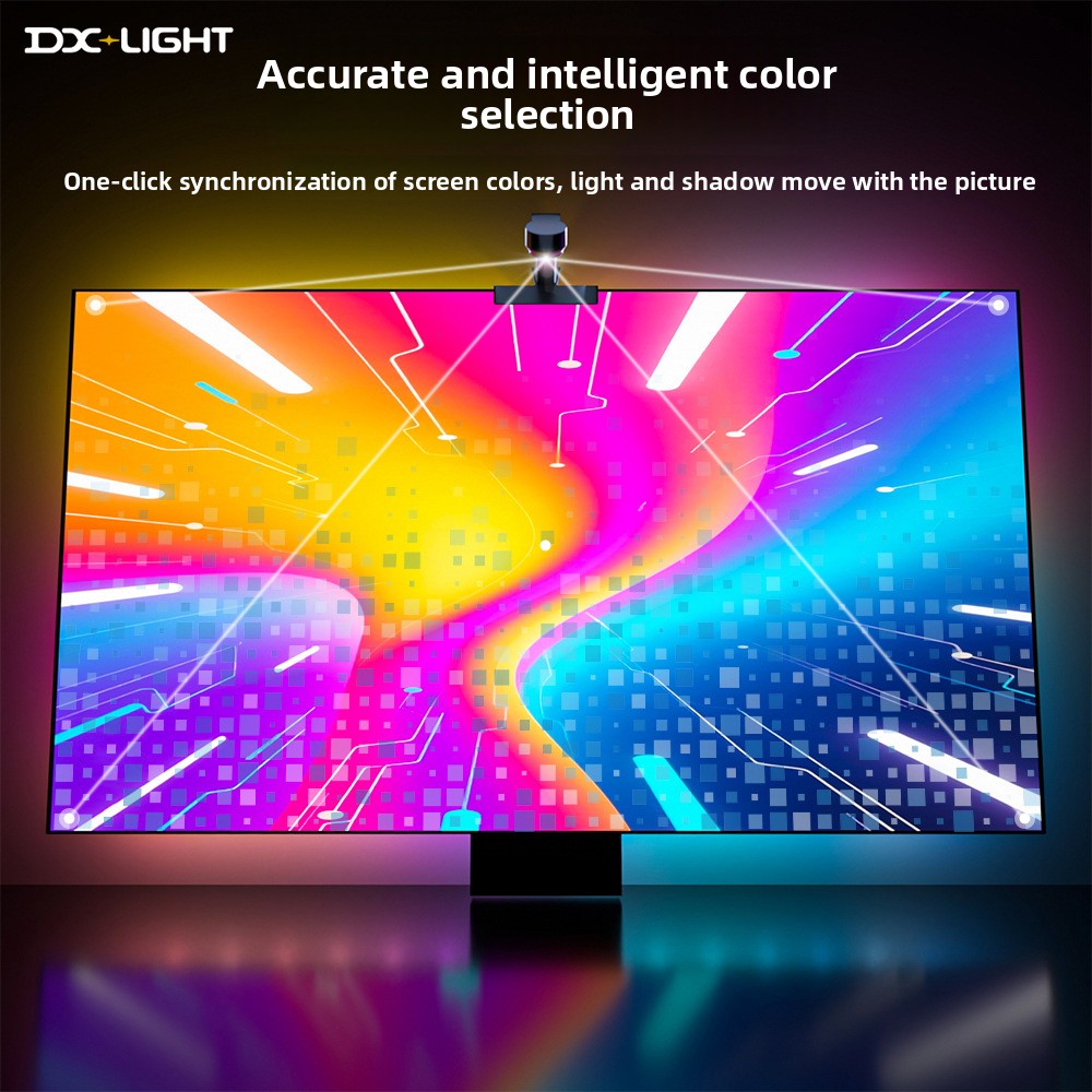 Overview Bluetooth Connectivity - Wireless control via smartphone app for convenient operation Color Sync Technology - Real-time color matching with TV screen content for immersive viewing Self-Adhesive Design - Easy installation with adhesive backing for quick setup RGB Lighting - Multicolor dynamic effects with 5050 LED beads for vibrant illumination Long Lifespan - 30,000 hours operational durability with Epistar LED chips
