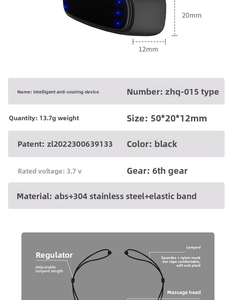 Intelligent Pulse Technology: Utilizes gentle electrical pulses to stimulate throat muscles and reduce snoring.