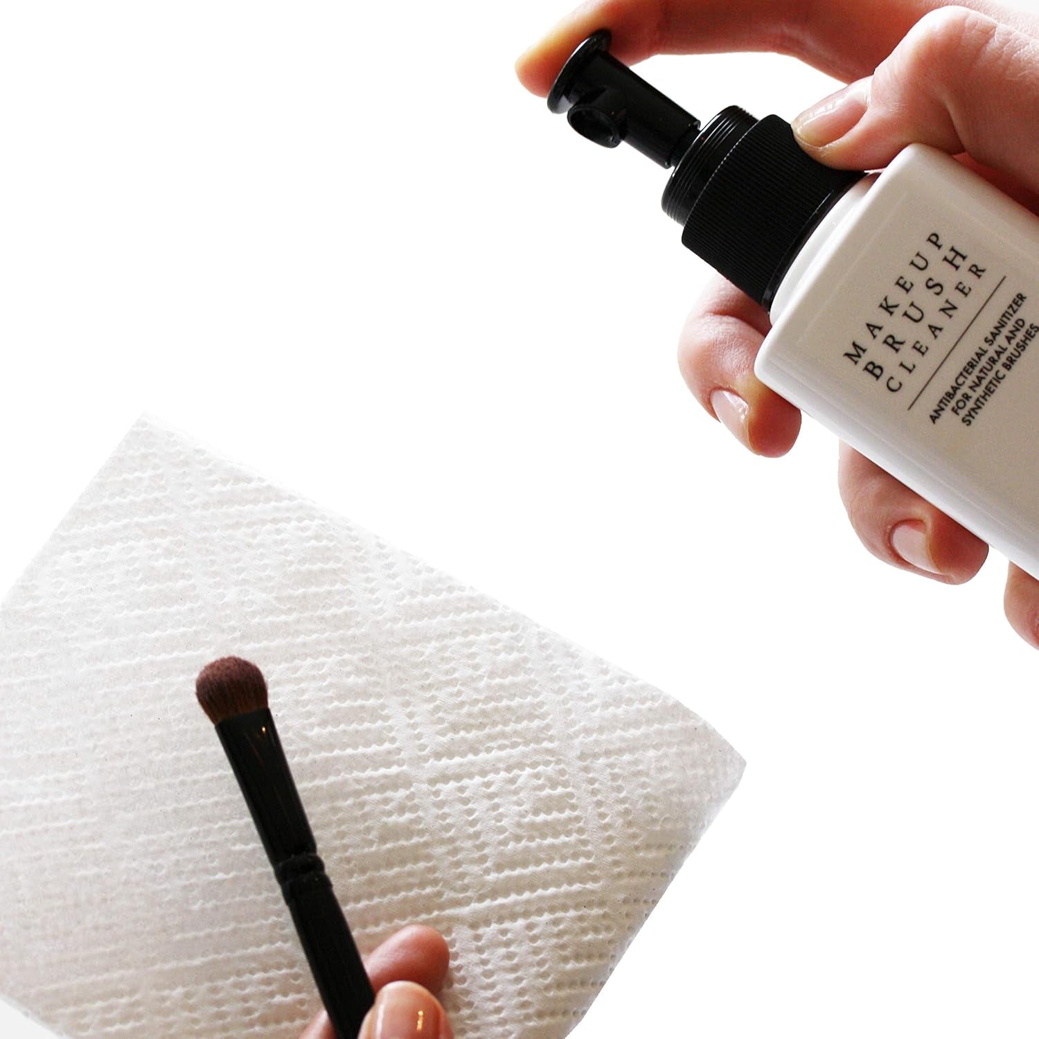 1. Spray the Makeup Brush Cleaner directly onto your makeup brush from 20cm.
