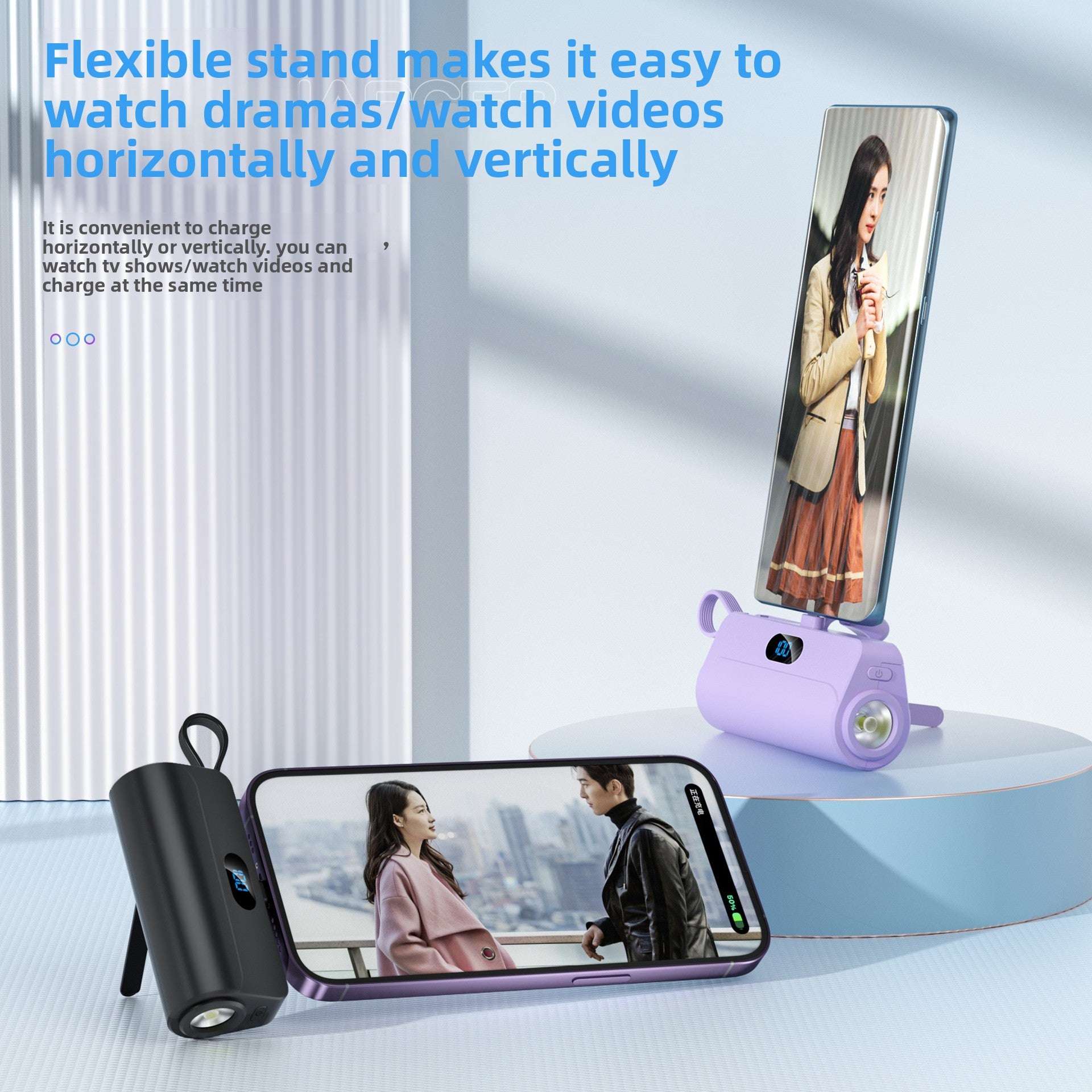Built-in Features - Integrated cable, stand, and LED light for multifunctionality.