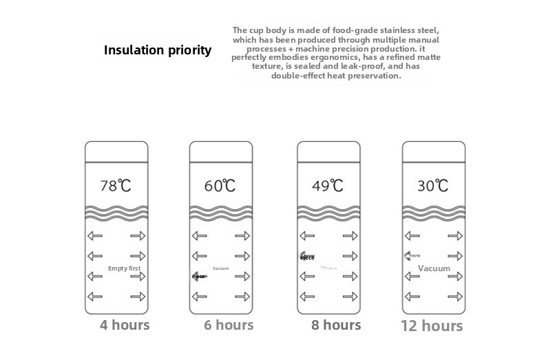 Vacuum Insulation: Maintains temperature for 12-24 hours for hot/cold beverages