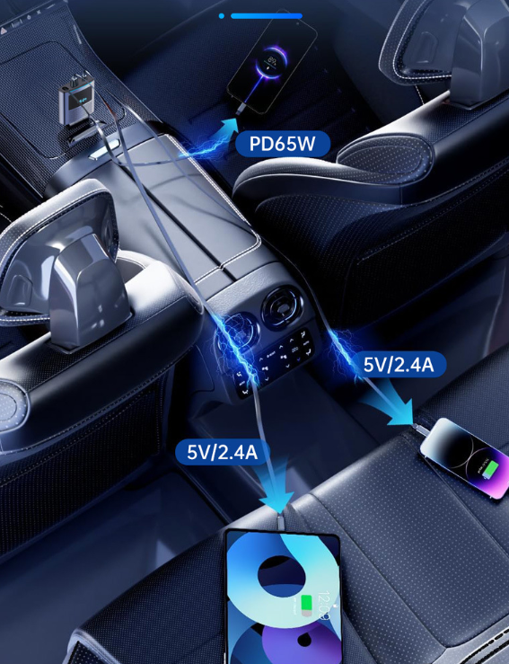 Car Charger with Retractable Cable Fast Charging 80.5W