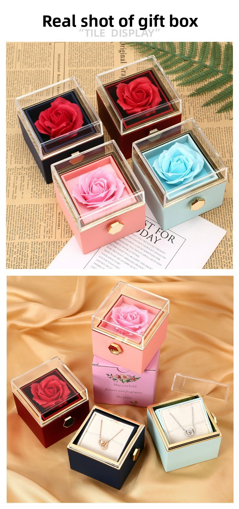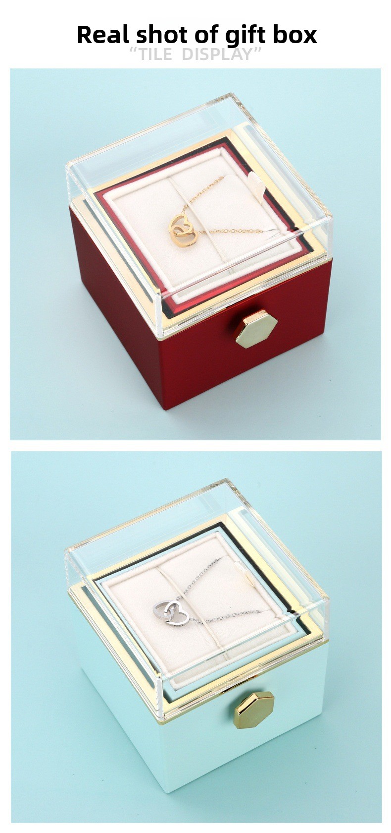 Creative Design: Rotating heart-shaped jewelry box with soap flowers, perfect for Valentine's Day and gift-giving occasions.