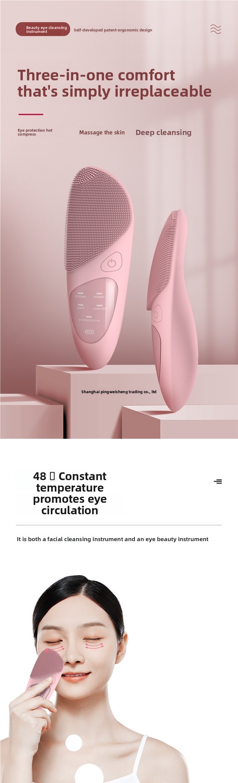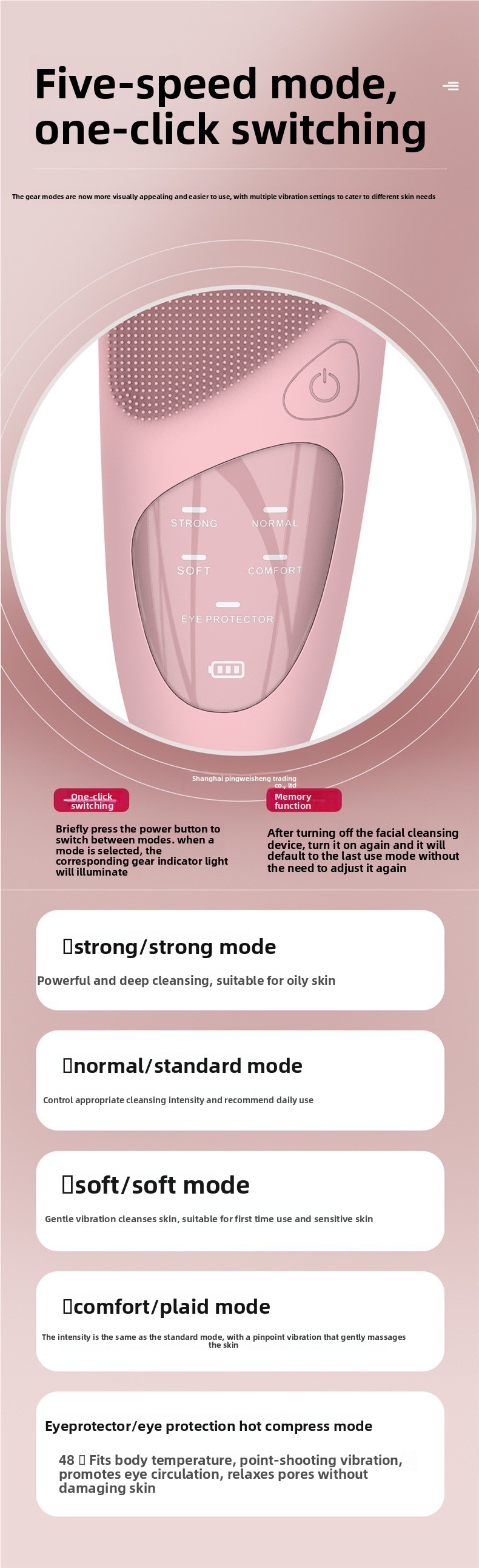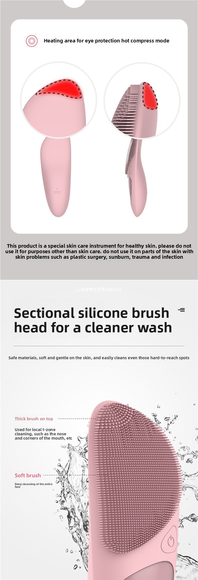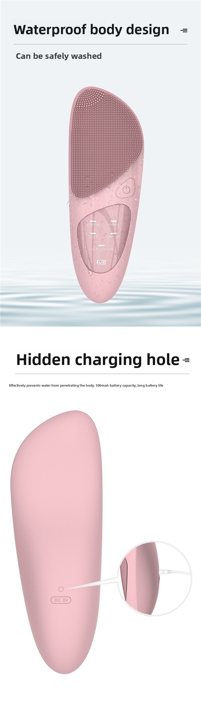 Silicone brush head: Soft and gentle on skin, suitable for sensitive skin types
