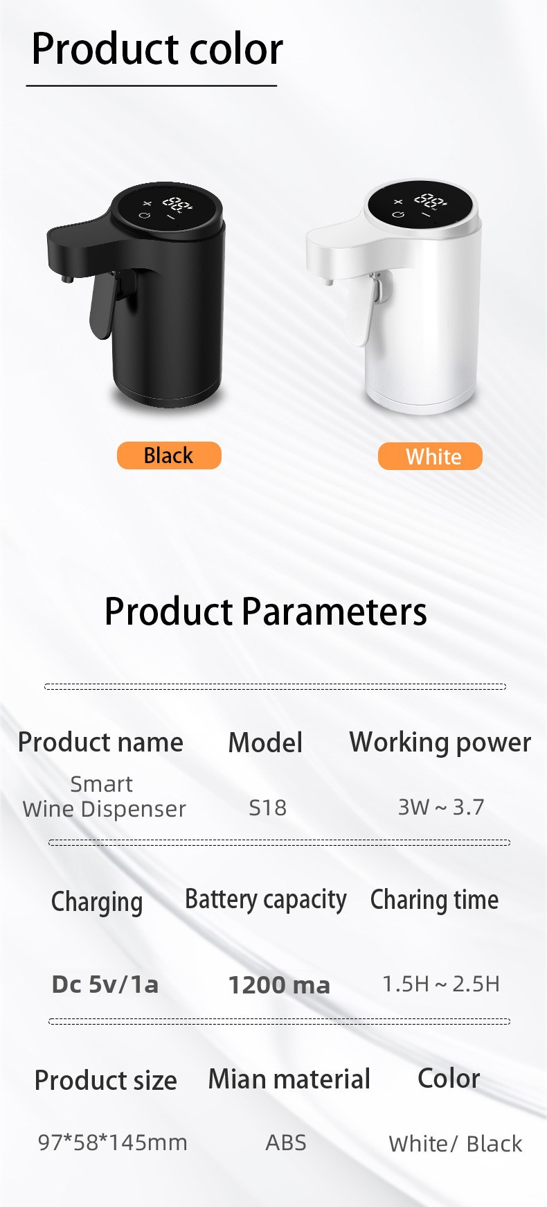 Colors: White, Black