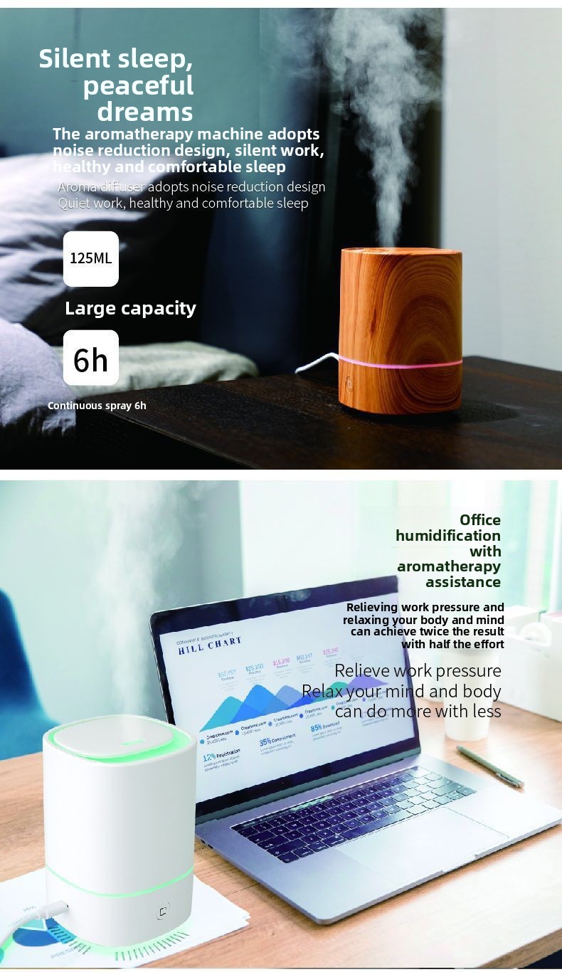 Functions: Humidification, negative ions, aromatherapy, sleep aid, atomization, ultrasound, mute, lighting,